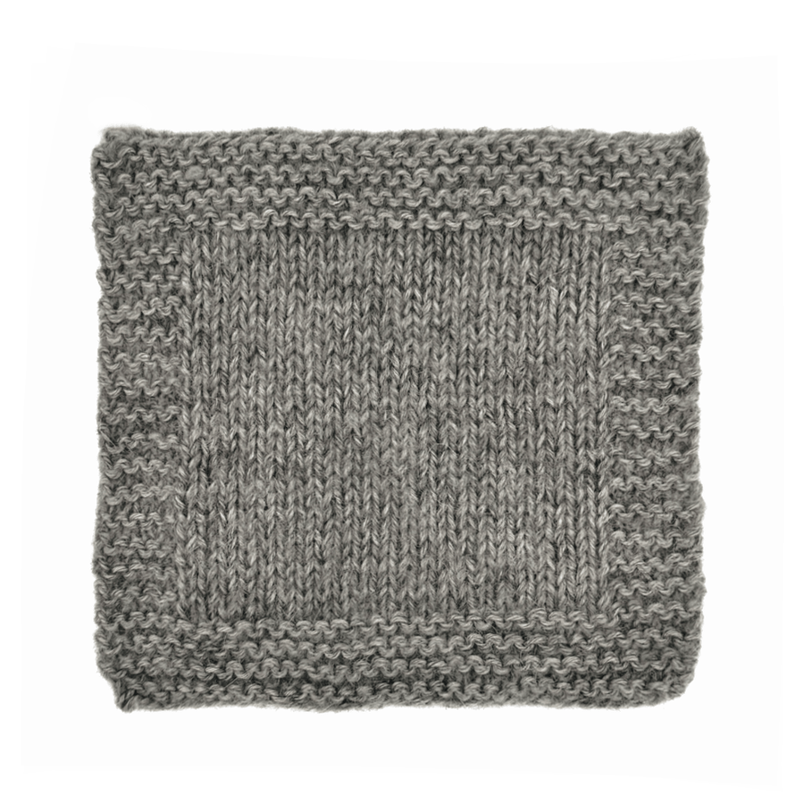 21 m x 28 p i glatstrik på pind 4 mm = 10 x 10 cm.
