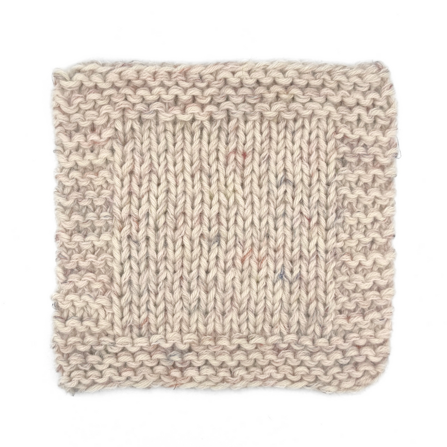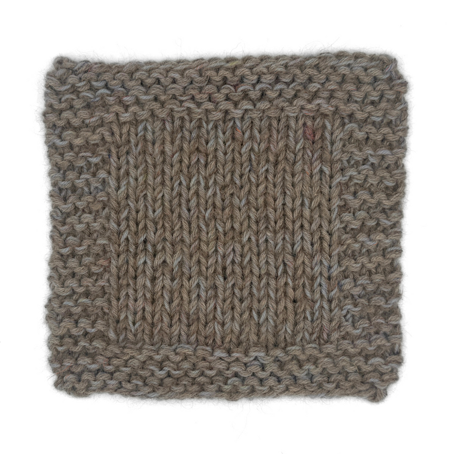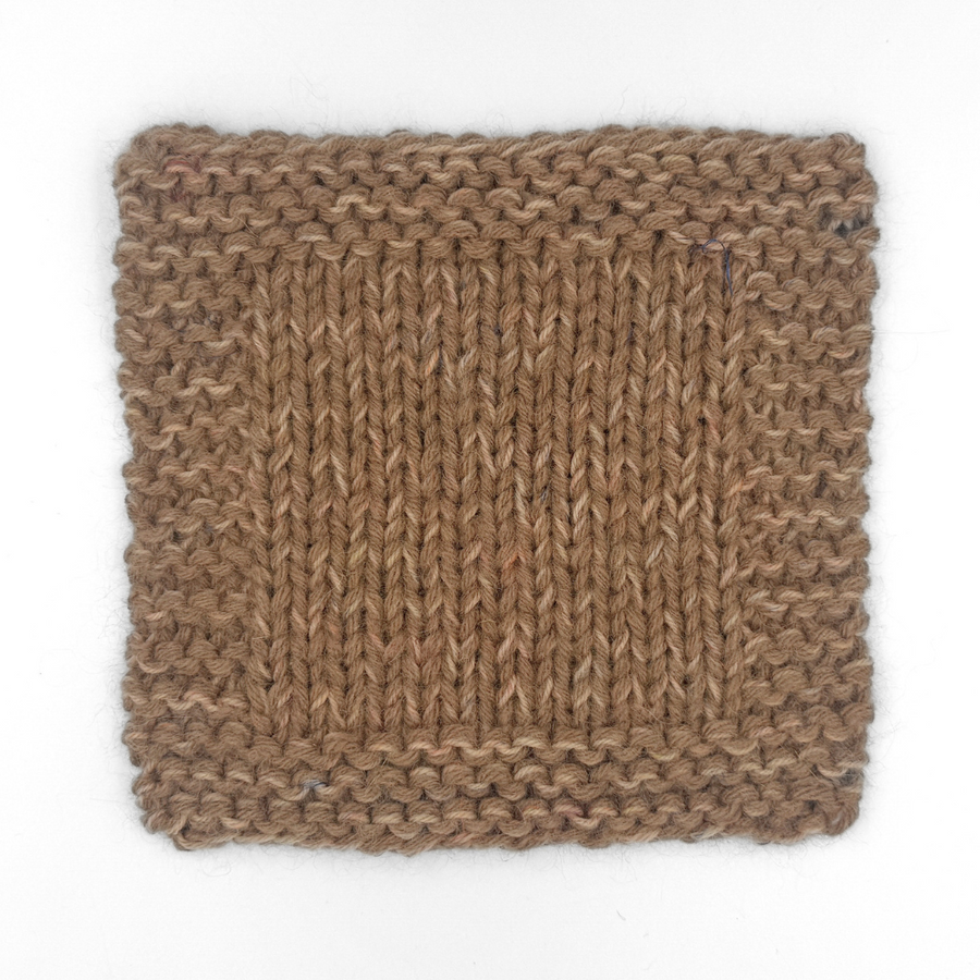 12 m x 17 p i glatstrik på pind 7 mm = 10 x 10 cm.